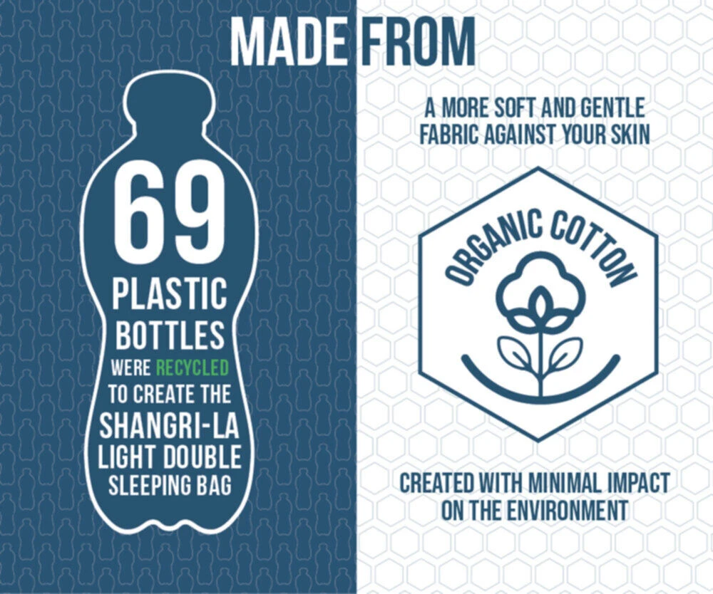 A double sleeping bag offering a luxurious, sustainable sleeping bag designed to be paired with the Shangri-La mattresses for the ultimate comfort.